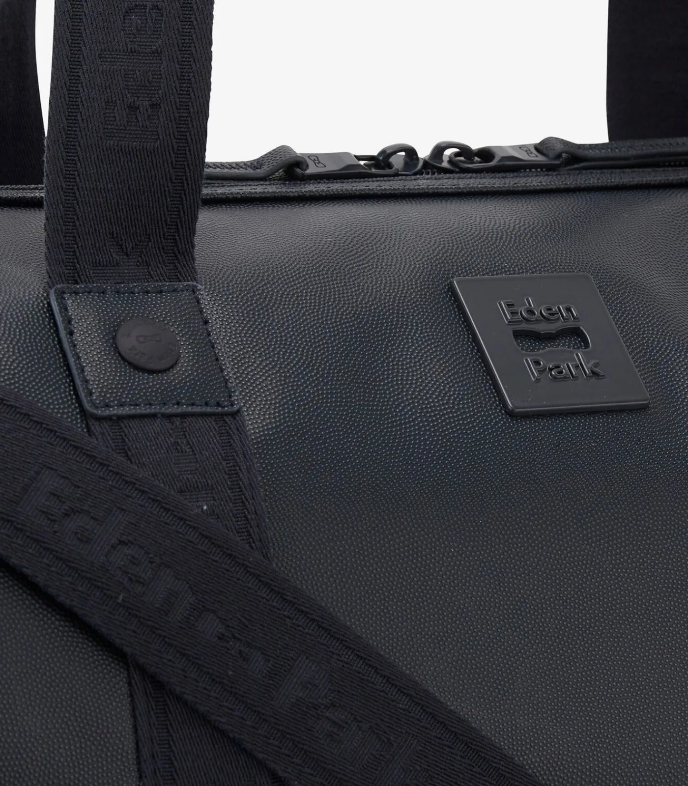 in korrelig leer 2 reliëf eden park handgrepen in het midden 4 decoratieve eden park gegraveerde metalen knoppen aan de buitenkant hoofdcompartiment met dubbele zip sluiting 1 ritszak en twee patchzakken binnen verstelbare en afneembare
