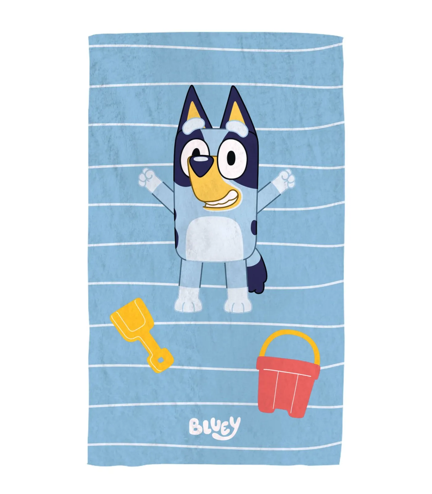 Ontmoet je favoriete heldin Bluey in deze 100% katoenen badhanddoek. Of het nu voor in bad, op het strand of bij het zwembad is, deze lichte en zeer absorberende handdoek kan overal mee naartoe genomen worden. Kenmerken van de BLUEY HOURRA badhanddoek: Afmetingen: 70×120 cm Materiaal: 100% katoen – zeer zacht, pluizig en ultra–absorberend Uitstekende printkwaliteit Wasbaar op 40°C Dit product is gecertificeerd volgens de OEKO–TEX® Standard 100 CQ901–3 IFTH, wat garandeert dat de hoeveelheden resterende schadelijke stoffen in zeer lage hoeveelheden worden gecontroleerd, zonder gevaar voor de mens. Onze producten worden regelmatig getest door erkende laboratoria om aan deze certificering te voldoen. We zijn ook lid van de BSCI, wat goede arbeidsomstandigheden garandeert.