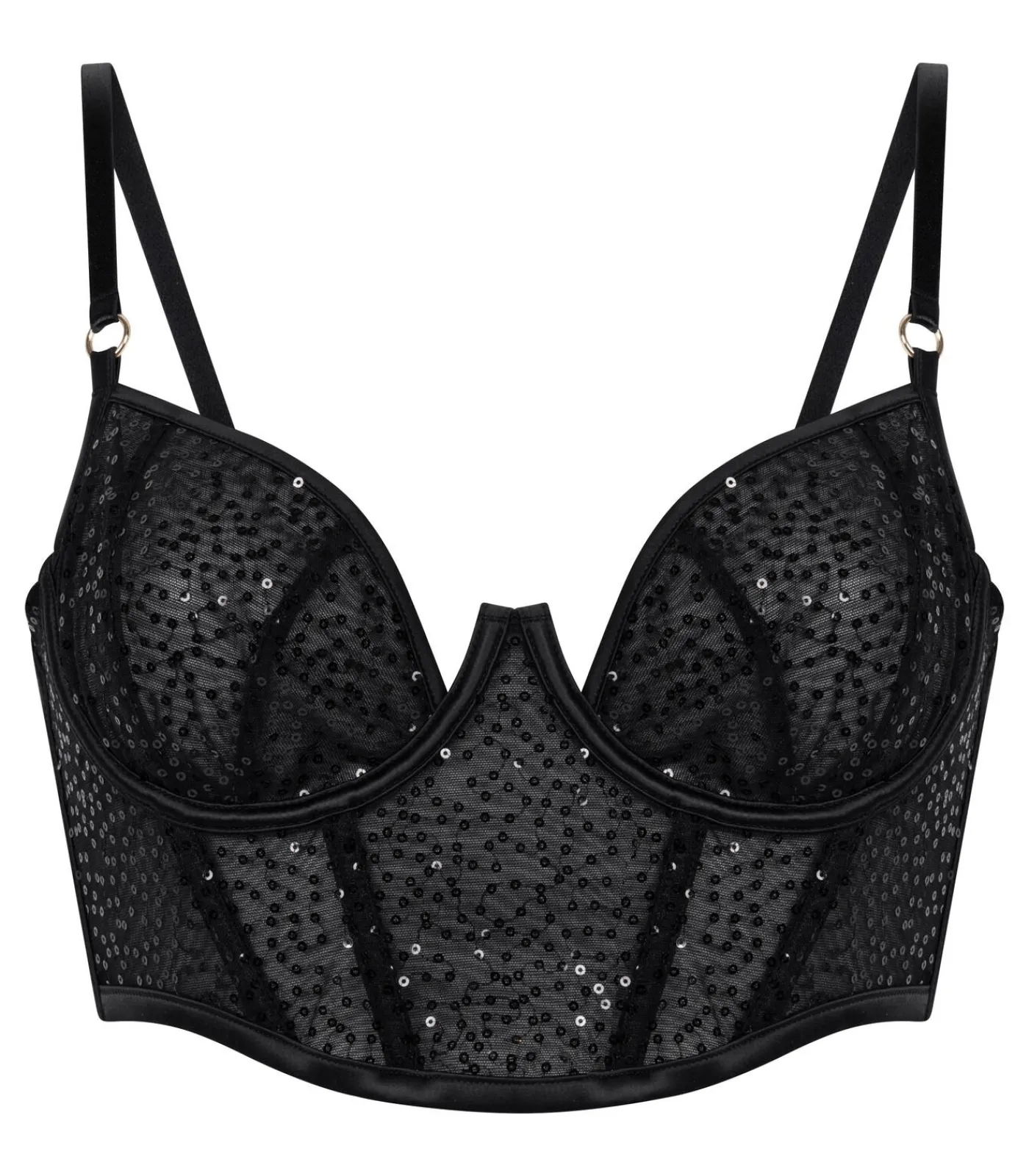Maak een statement met deze bh, waar een opvallende en mooie stijl samenkomen. Deze niet–voorgevormde beugel bh is ontworpen om te vormen en te ondersteunen, en heeft een flatterend longline–silhouet dat je natuurlijke vorm accentueert. De glimmende glitterpailletten zorgen voor een intense glans, terwijl de gestructureerde pasvorm comfort en lift biedt. Combineer hem met het bijpassende broekje voor een complete look.