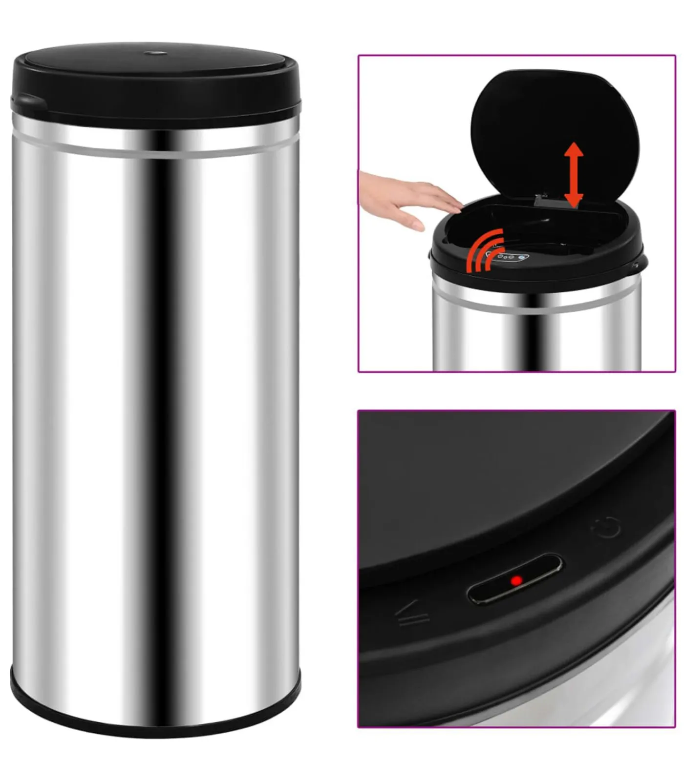 New Prullenbak met automatische sensor 80 L roestvrij staal Manden En Bakken