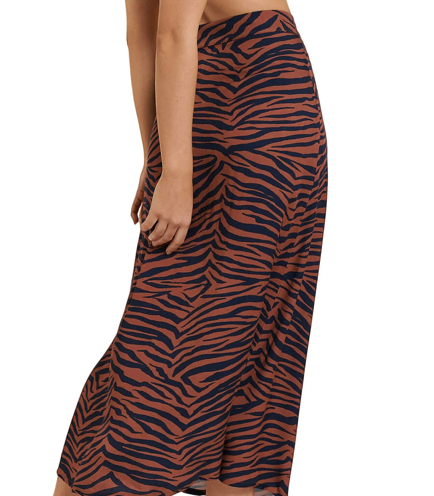 Zomerse wikkelrok, midi lengte, hoge taille met een brede band aan de voorzijde. Klepsluiting aan de voorkant met bandjepje. Ingenaaide drukknopen aan de binnenkant van de tailleband zorgen voor een precieze pasvorm. Lengte ca. 85 cm. Gemaakt van zachte viscose voor ultiem comfort. Op het strand of aan de bar, bij het zwembad of in de stad, dit kledingstuk zal perfect zijn door zijn multifunctionaliteit. Met een gedurfde tweekleurige dierenprint in een frisse, jeugdige stijl, is het gemakkelijk te dragen, veelzijdig en buiten het seizoen, ideaal voor zowel strandlooks als dagelijks gebruik.[Rok wordt apart verkocht. Zwemkleding, schoenen, sieraden en andere accessoires die het model op de foto’s draagt, zijn niet inbegrepen].