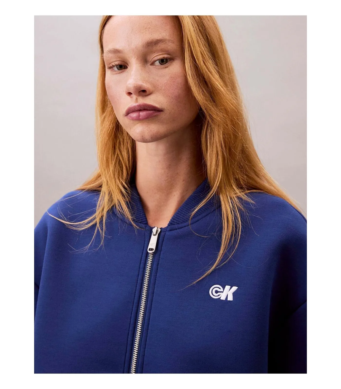 Kleur: Blue Herald. Samenstelling: 78% polyester, 13% viscose, 9% elastaan. Mouwen: Lang. Pasvorm: Relaxed. Sluiting: Ritssluiting aan de voorkant. Details: Bomberkraag, paspelzakken aan de zijkant, geborduurd monogramlogo op de borst. Gebruik: Ideaal voor een casual–chique look, perfect voor in de stad of in je vrije tijd.