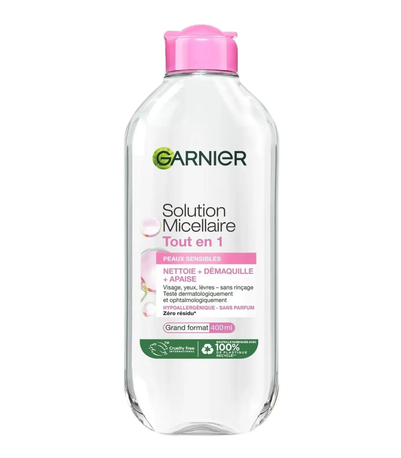 De Alles–in–1 Micellair Water – Gevoelige Huid – Grote Formaat van Garnier, verkrijgbaar in 400 ml, is een complete oplossing die in één stap reinigt, make–up verwijdert en kalmeert zonder af te spoelen. Ontworpen voor de gevoelige huid, verwijdert het effectief make–up, onzuiverheden en vervuiling dankzij de innovatieve micellaire technologie. Garnier biedt een zachte reiniging die het natuurlijke evenwicht van de huid respecteert. Dankzij de unieke formule werkt de Alles–in–1 Micellair Water – Gevoelige Huid – Grote Formaat van Garnier als een magneet voor onzuiverheden zonder te wrijven. De micellen reinigen de huid zacht en verminderen irritaties. Geurvrij en dermatologisch getest, is dit micellair water ideaal voor alle gevoelige huidtypen en zorgt voor een veilige, effectieve dagelijkse reiniging. Verkrijgbaar in een royale 400 ml, is de Alles–in–1 Micellair Water – Gevoelige Huid – Grote Formaat van Garnier perfect voor regelmatig gebruik thuis. Dit grote formaat garandeert langdurig gebruik met de vertrouwde kwaliteit van Garnier. Het reinigen van gezicht, ogen en lippen wordt eenvoudig, snel en effectief, terwijl het comfort van de meest gevoelige huid behouden blijft.