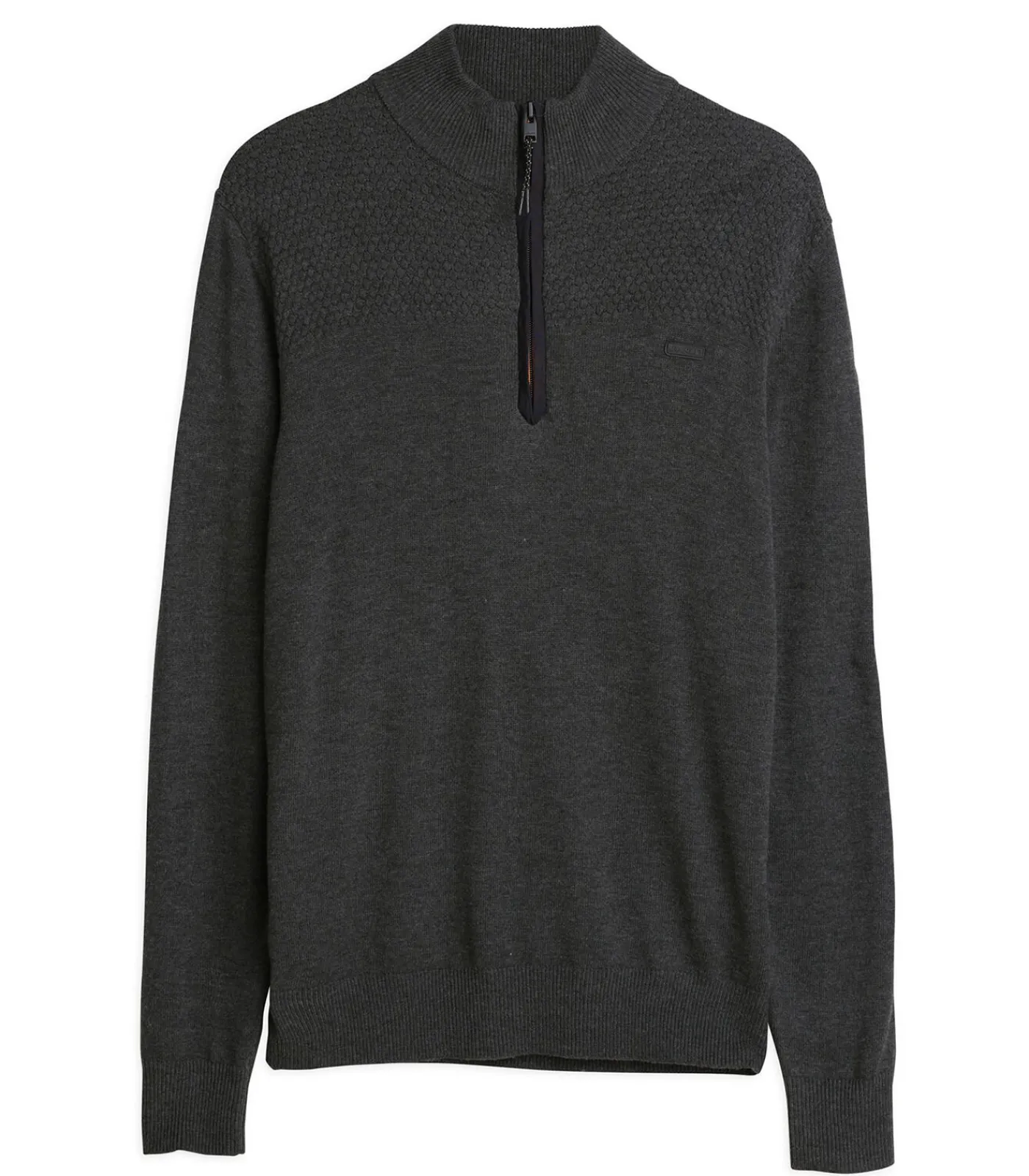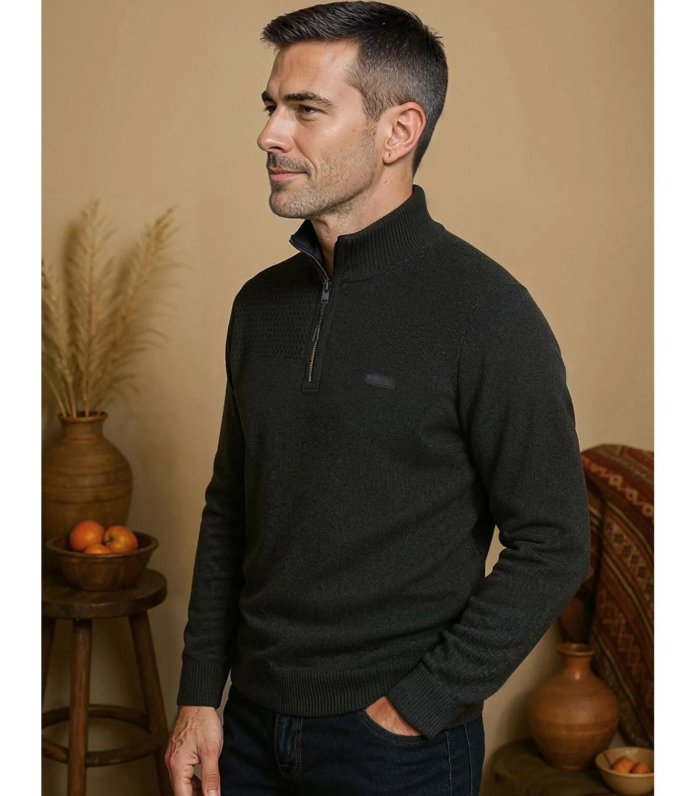 Kies voor elegantie en comfort met deze blauwe herentrui met rits, geïnspireerd op de drukte van Santiago. Gemaakt van een mix van 45% nylon, 30% acryl, 20% viscose en 5% kasjmier, biedt deze trui zowel warmte als zachtheid. De rechte snit en opstaande ritskraag geven een moderne touch, terwijl de geribbelde stretchboorden en manchetten zorgen voor een comfortabele pasvorm. Lange mouwen en het uitgewiste J&JOY–logo op het hart maken deze verfijnde look compleet. Mis de kans niet om deze must–have trui aan je collectie toe te voegen. Bestel nu en wees klaar om de winter stijlvol tegemoet te treden.