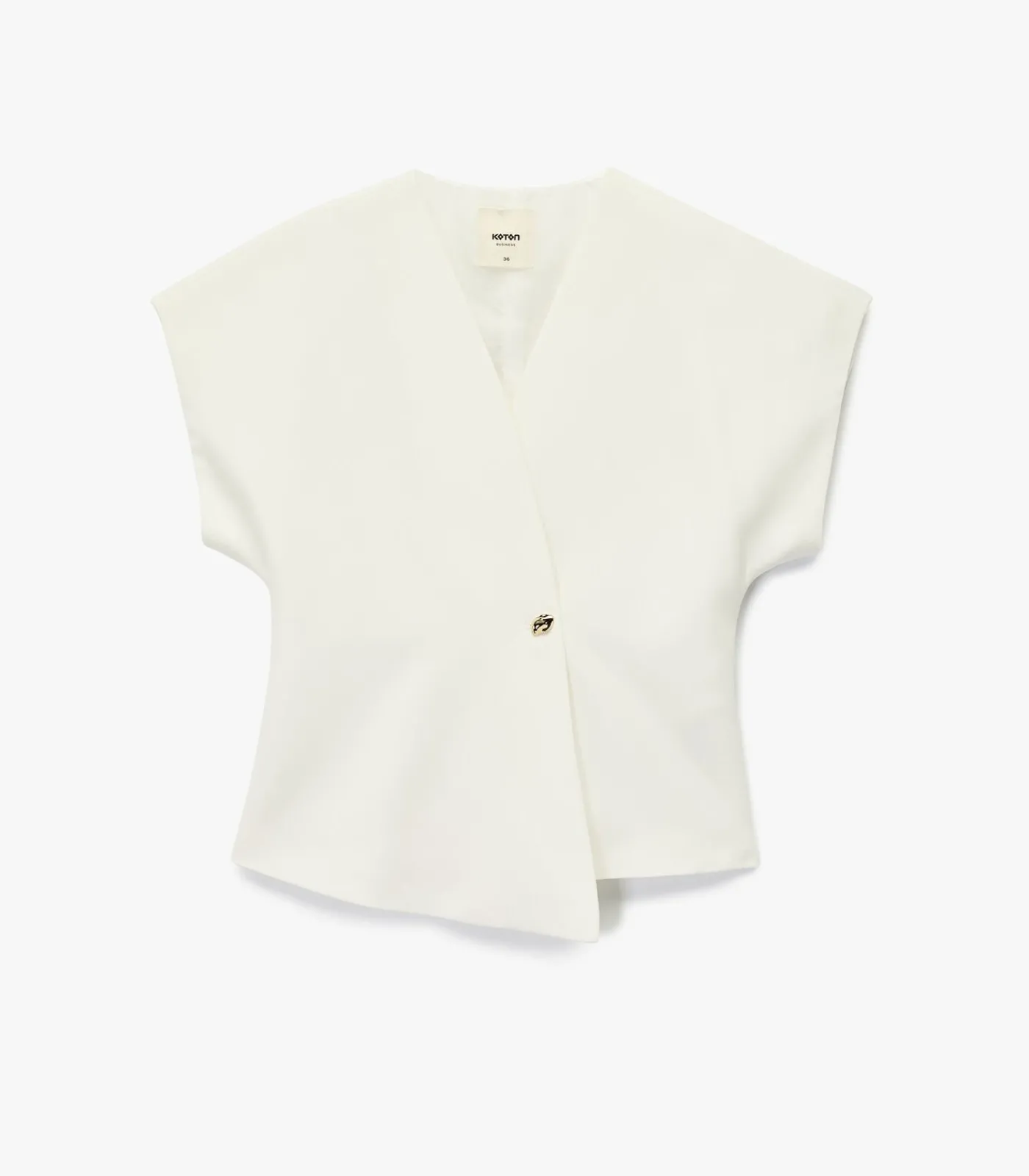 Deze moderne mouwloze gilet met een asymmetrische V–hals zorgt voor een verfijnde look die zowel geschikt is voor kantoor als voor dagelijks gebruik. De oversized pasvorm en het metalen knoopdetail geven een elegante touch aan je outfit. Perfect om te combineren met een klassiek wit overhemd en een kokerrok voor een zakelijke uitstraling of met een simpel T–shirt en jeans voor een casual weekendstijl.