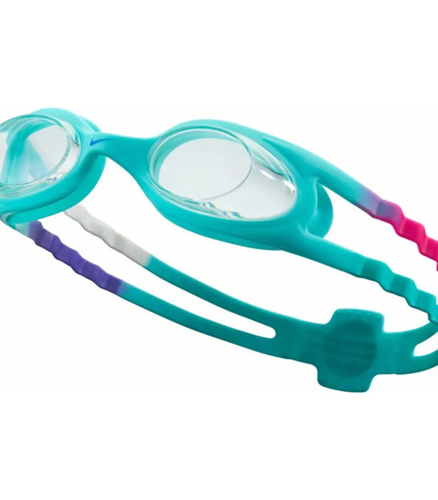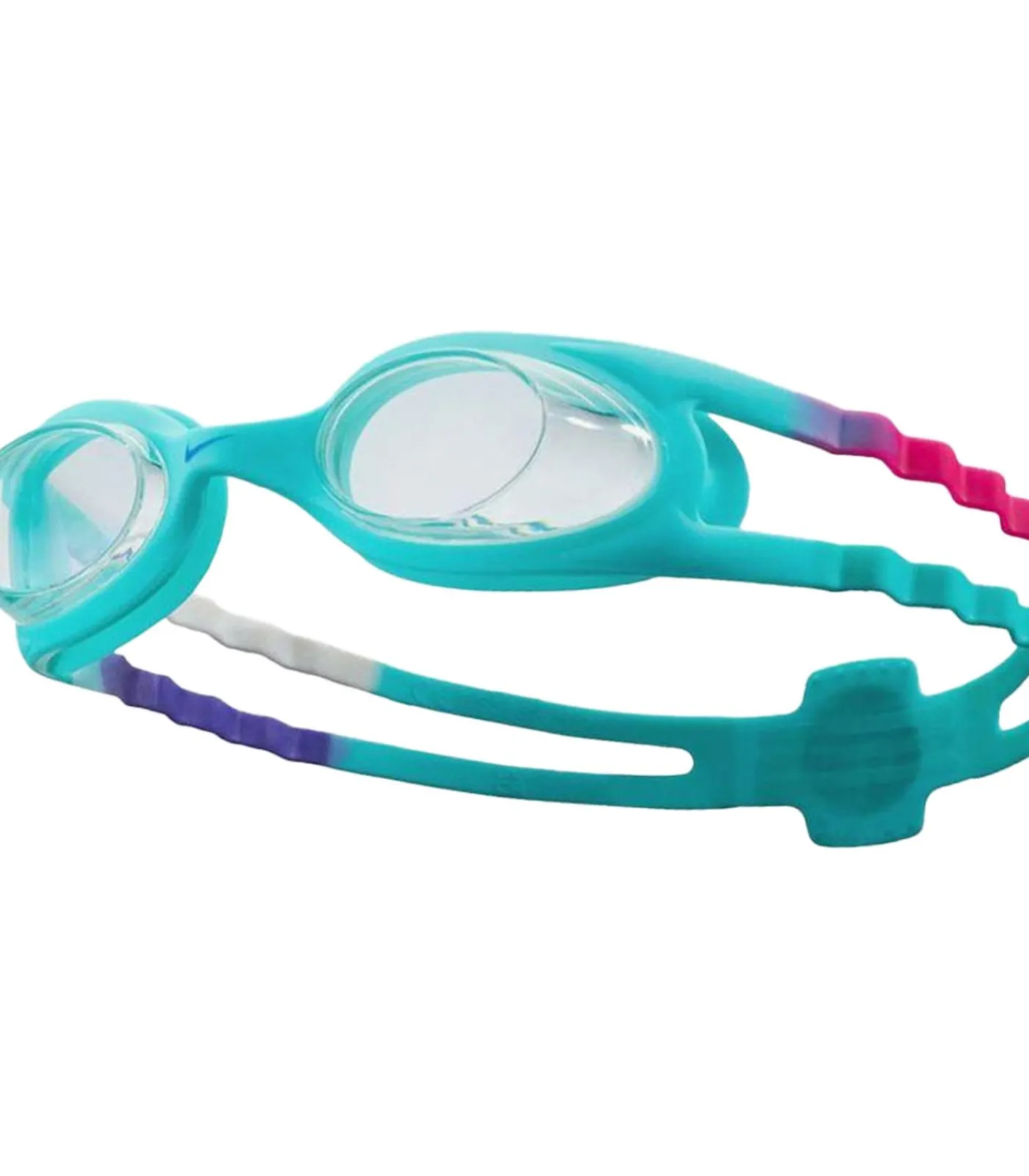Nike–merkzwembril NESSB163 in lichtblauw met contrasterende details. Dit zwembordje is gemakkelijk te dragen en heeft heldere lens’s om je onder water zichtbaar te maken. De dubbele siliconen hoofdband zorgt ervoor dat het bijzonder waterdicht is.