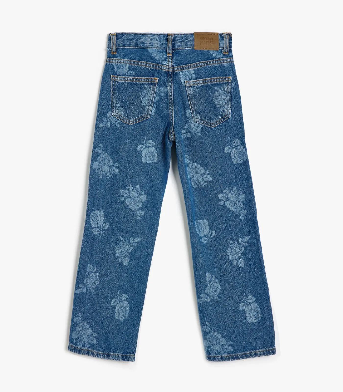 Rotatie afdruk Bloemen Recht Stijf Matige slijtage 5 Zakken Volledige lengte Normale taille Normaal mouw Jeansbroek