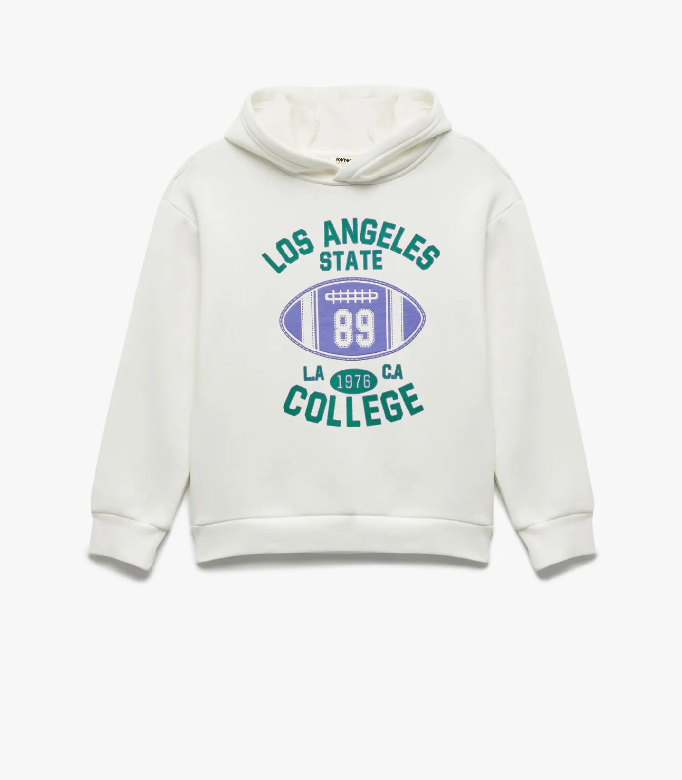 Koton Soft interior long sleeve hooded printed sweatshirt.