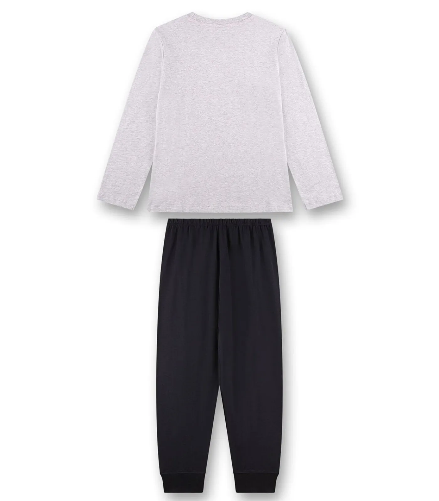 Sanetta pyjama voor jongens. Shirt met lange mouwen, groot motief op de voorkant en ronde hals. Effen, lange pyjamabroek.