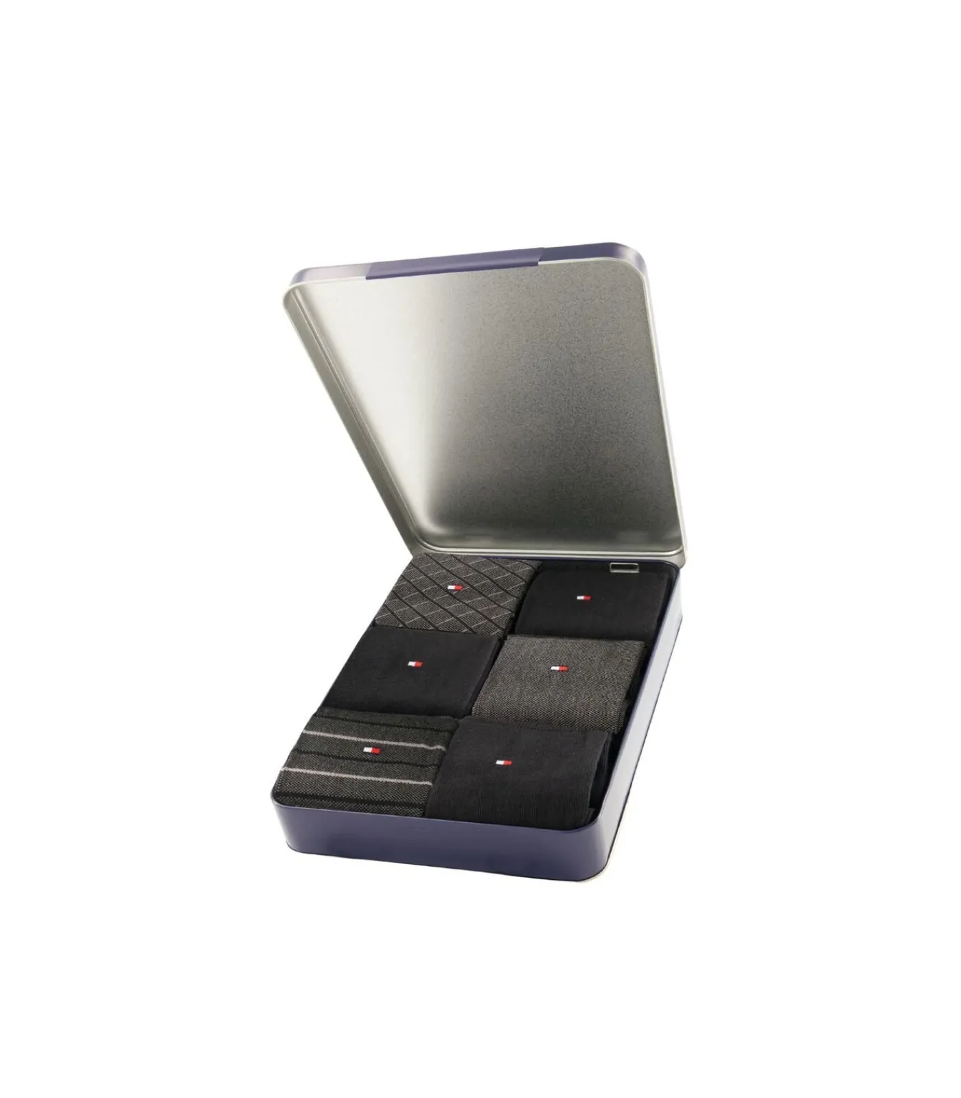 6 paar sokken in de kleur zwart waarvan 3 paar uni, 3 paar met strepen motief van Tommy Hilfiger in een voordeelpack