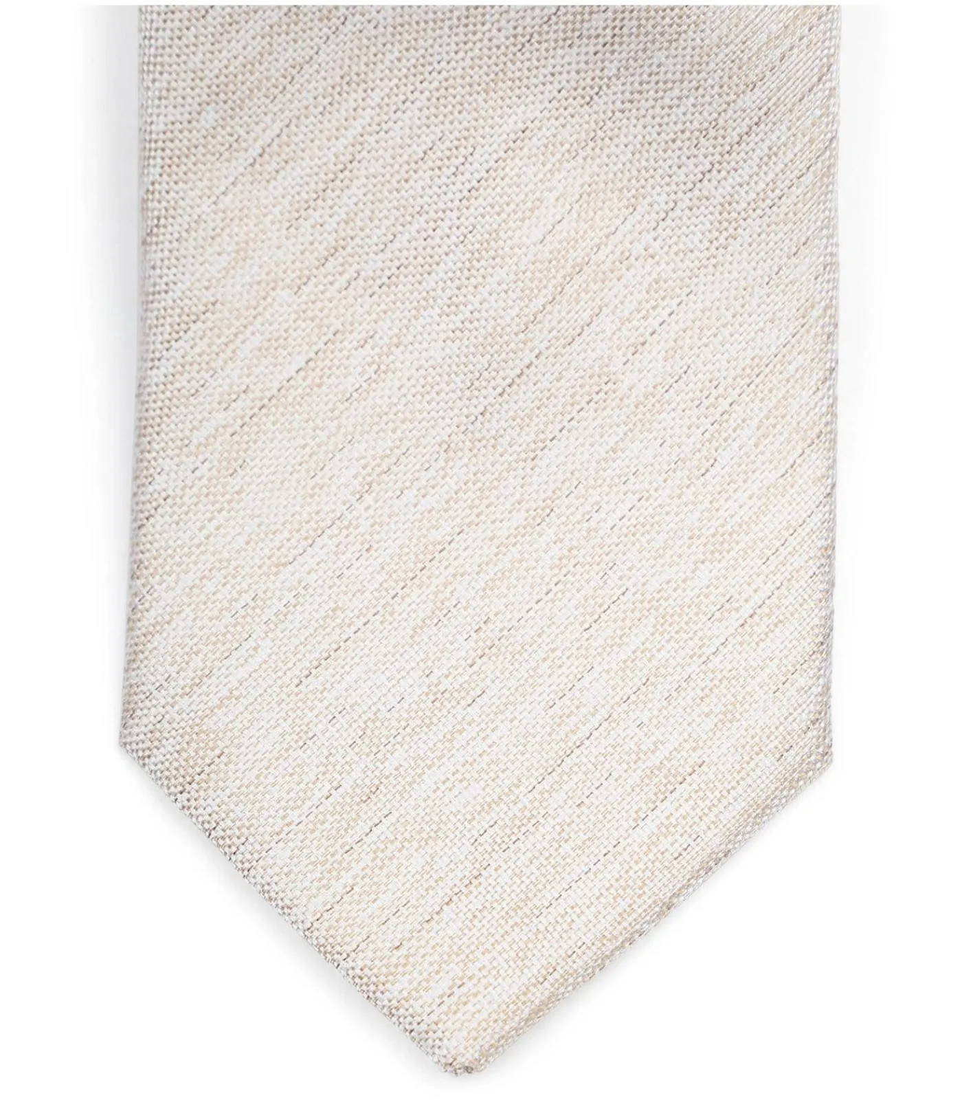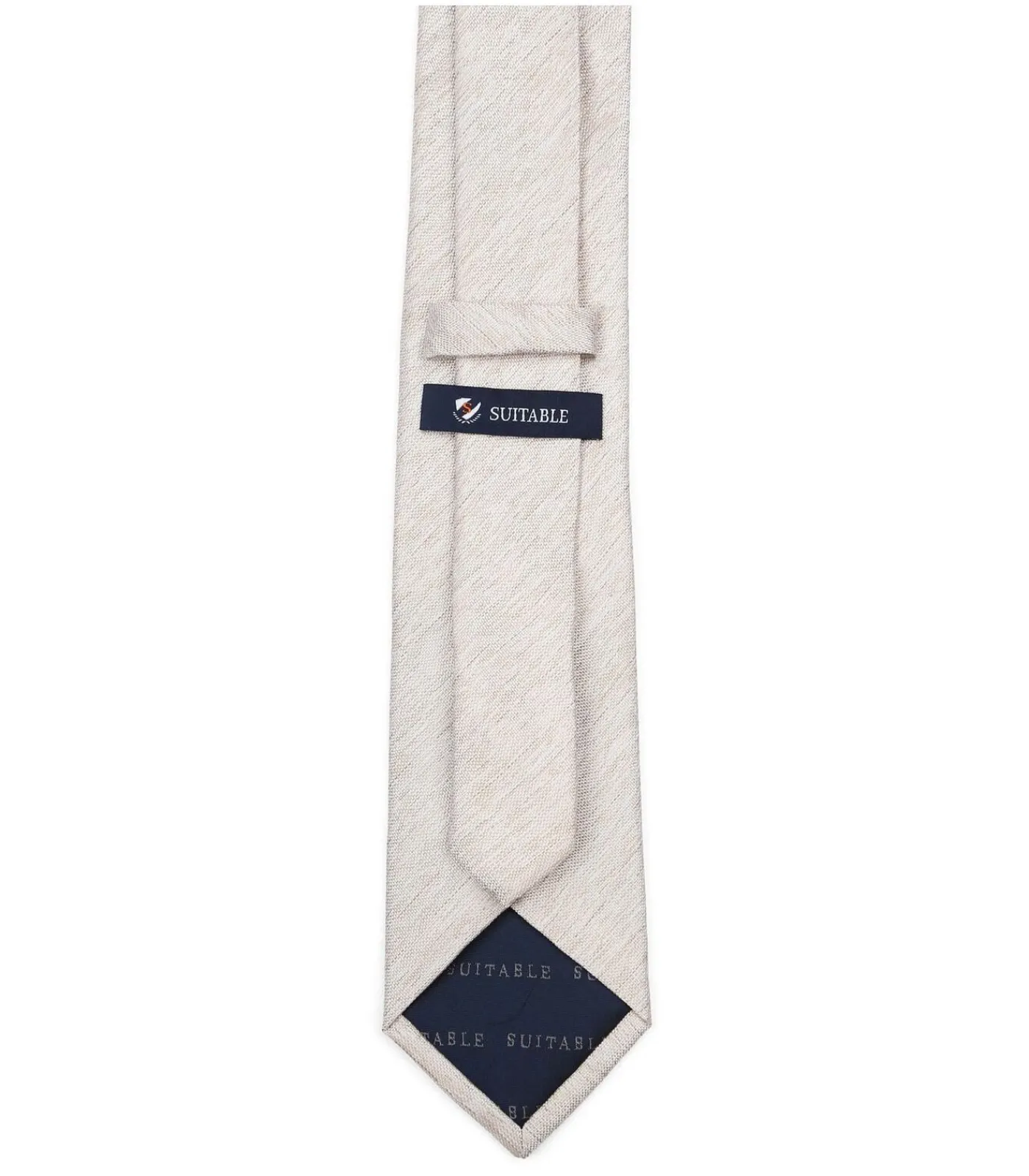 Geef een zakelijke touch aan je outfit door middel van deze stijlvolle stropdas van Suitable. De Suitable stropdas heeft een beige kleur met een gemeleerd dessin. De das is gemaakt van 100% zijde en heeft hierdoor een luxe uitstraling.Beige kleurGemaakt van 100% zijdeLengte 151 cmBreedte 7,5 cm (breedste punt)