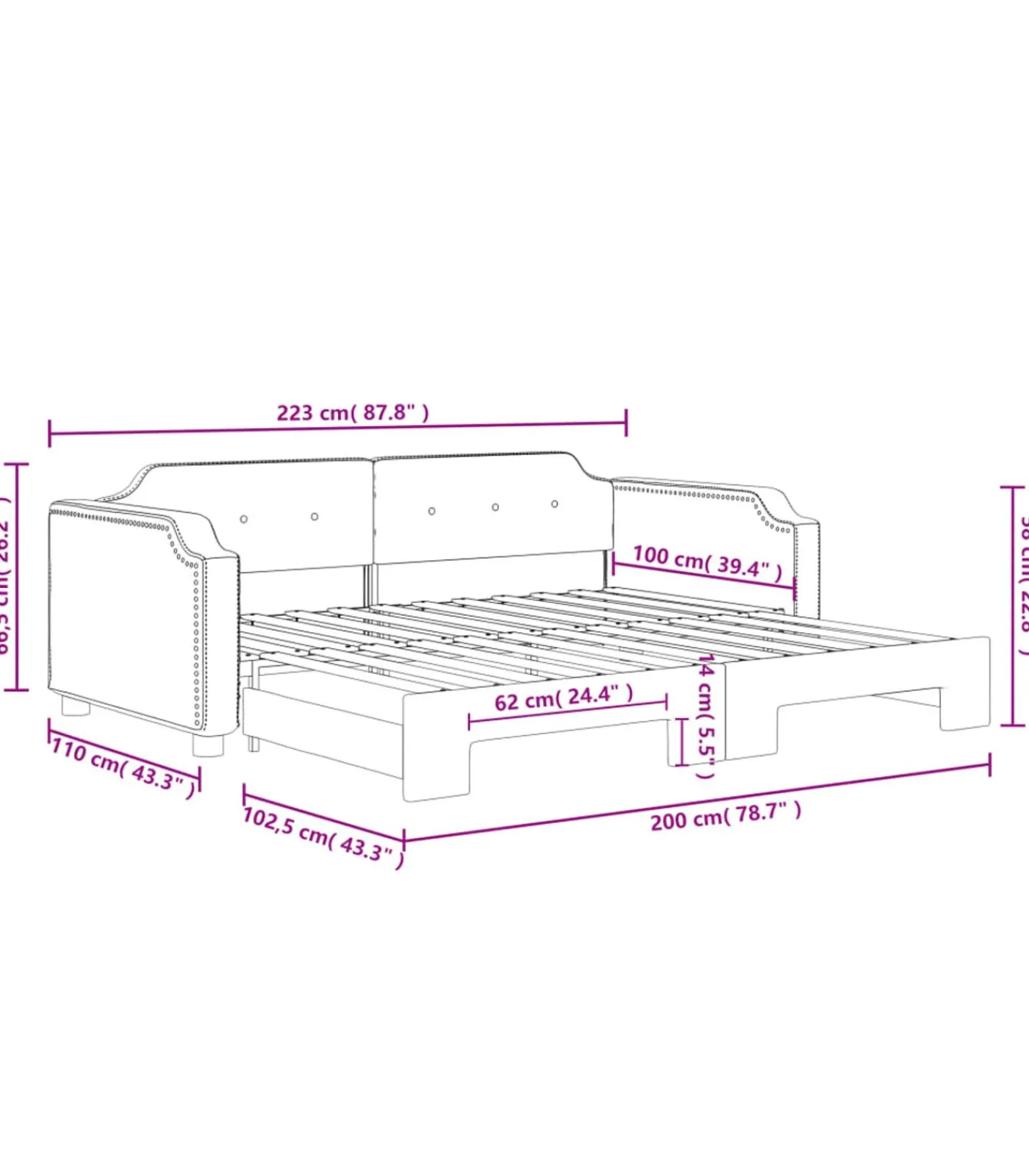 Afmetingen (uitgeschoven): 223 x 212,5 x 66,5 cm (L x B x H)