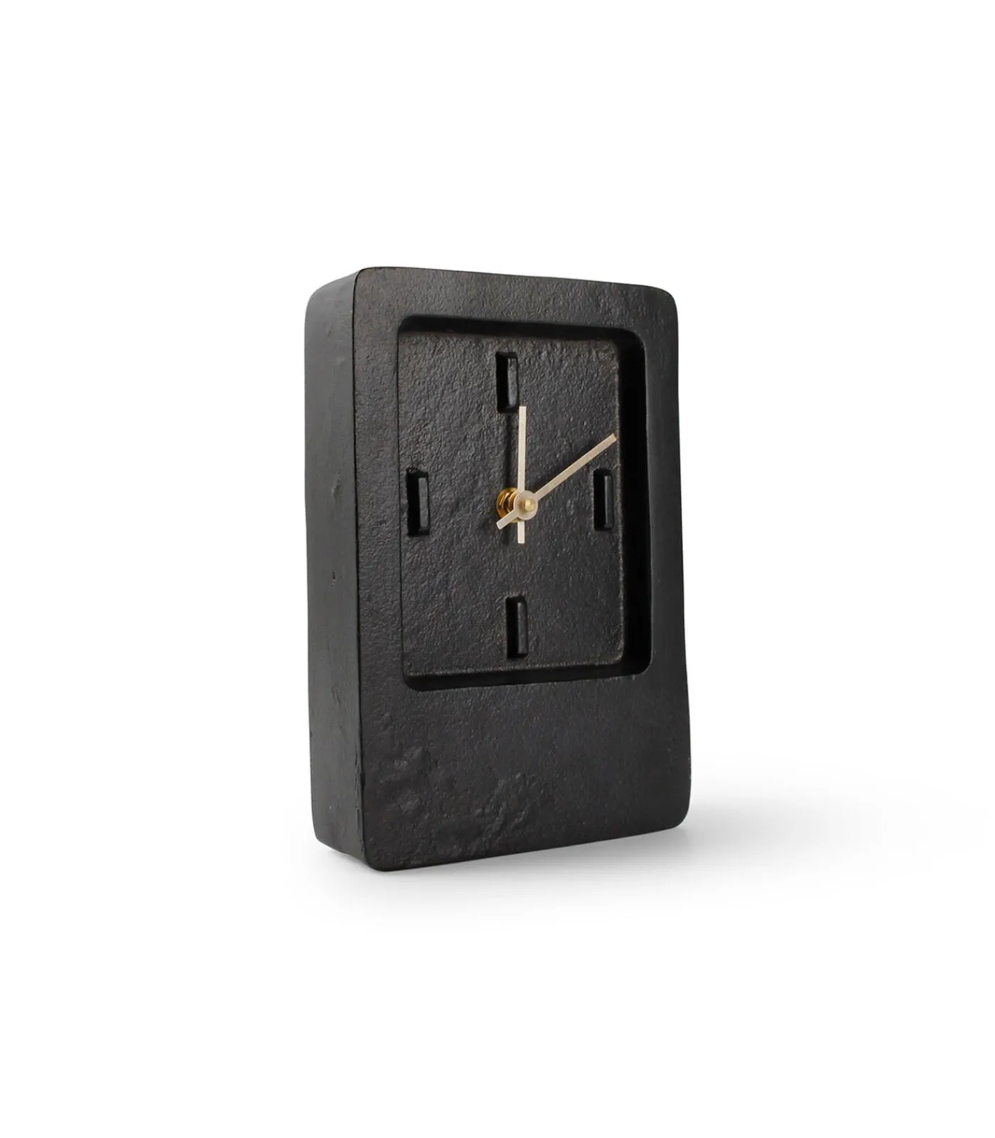 Onze Zone klokken collectie verrast met een nieuw model waardoor we de tijd nooit meer uit het oog zullen verliezen. Deze zwarte variant heeft een elegante uitstraling door zijn rechthoekige vorm en is gemaakt van gegoten aluminium. De zwarte kleur is een perfecte match met de gouden wijzers. Deze tafelklok is ideaal voor in elk interieur.Ontdek hier hoe u de klok kan herstellen als het uurwijzer los zit.