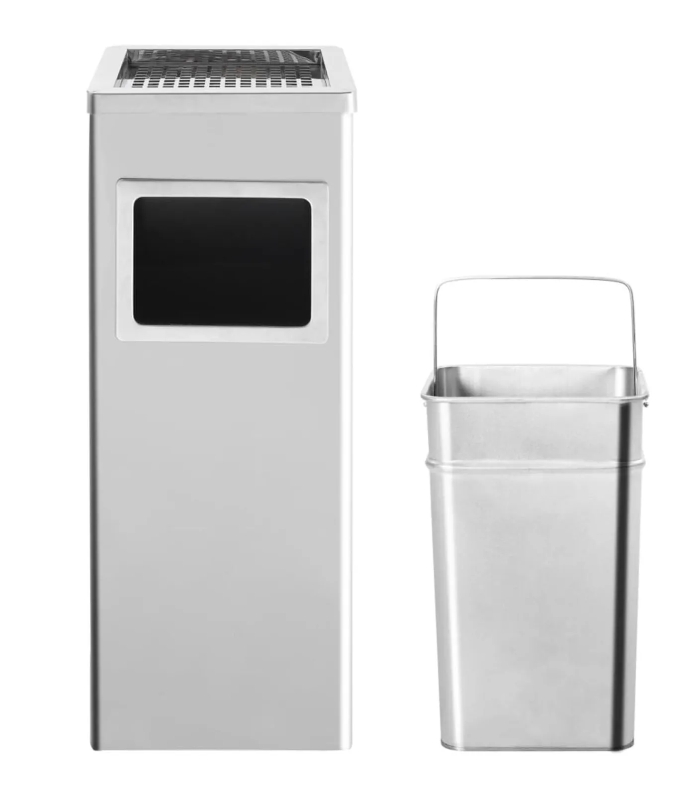 Onze hoogwaardige asbak/prullenbak wordt gekenmerkt door de elegantie van roestvrij staal en een asbakontwerp. Hij heeft niet alleen een geavanceerd ontwerp, maar is ook zeer functioneel. Onze afvalcontainer heeft een grote afvalbak met daarboven een asbak. Hij kan zowel binnen als buiten worden gebruikt en is dus ideaal voor hotels, restaurants, kantoren, enz.