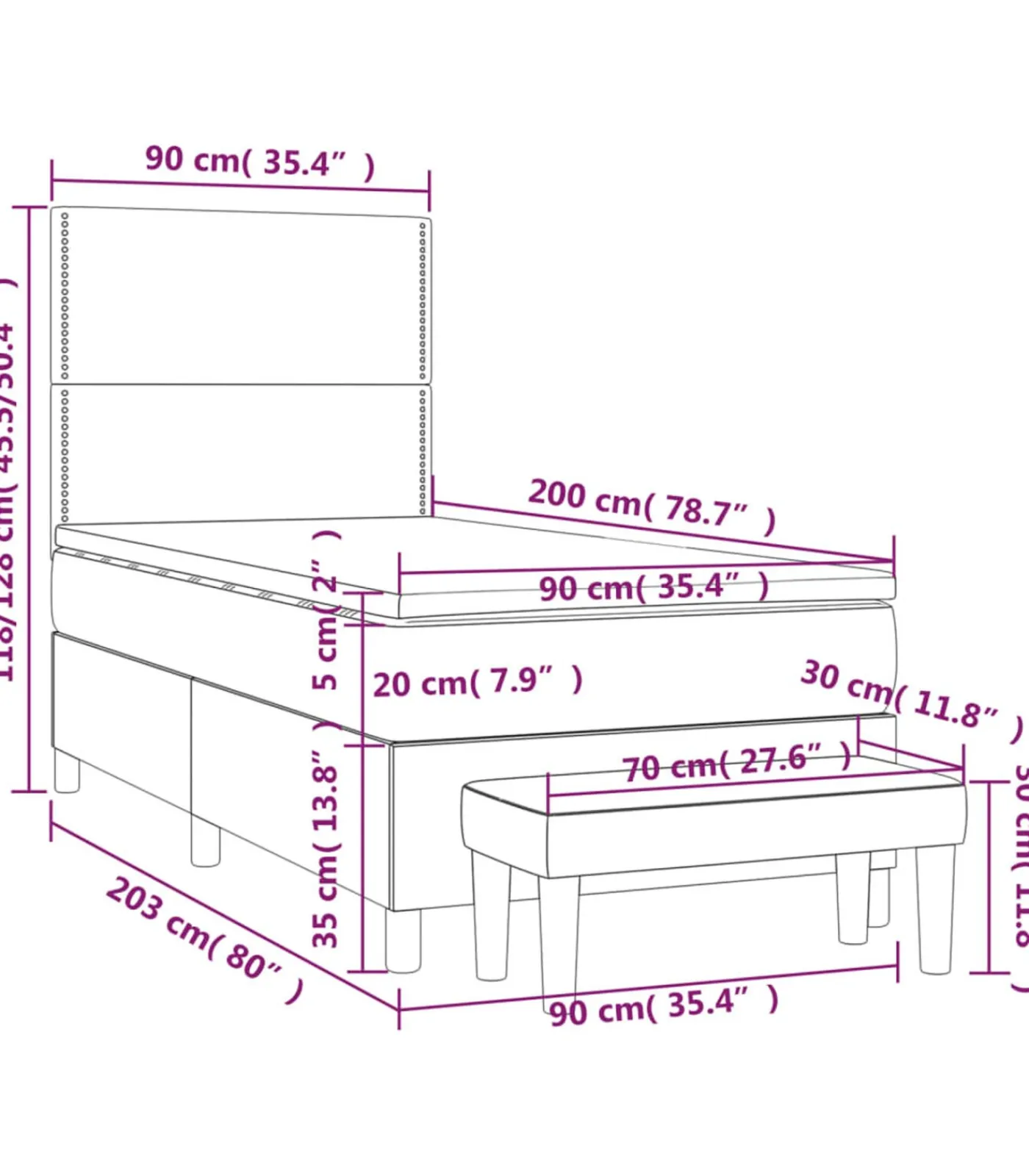 Afmetingen: 90 x 200 x 20 cm (B x L x H)