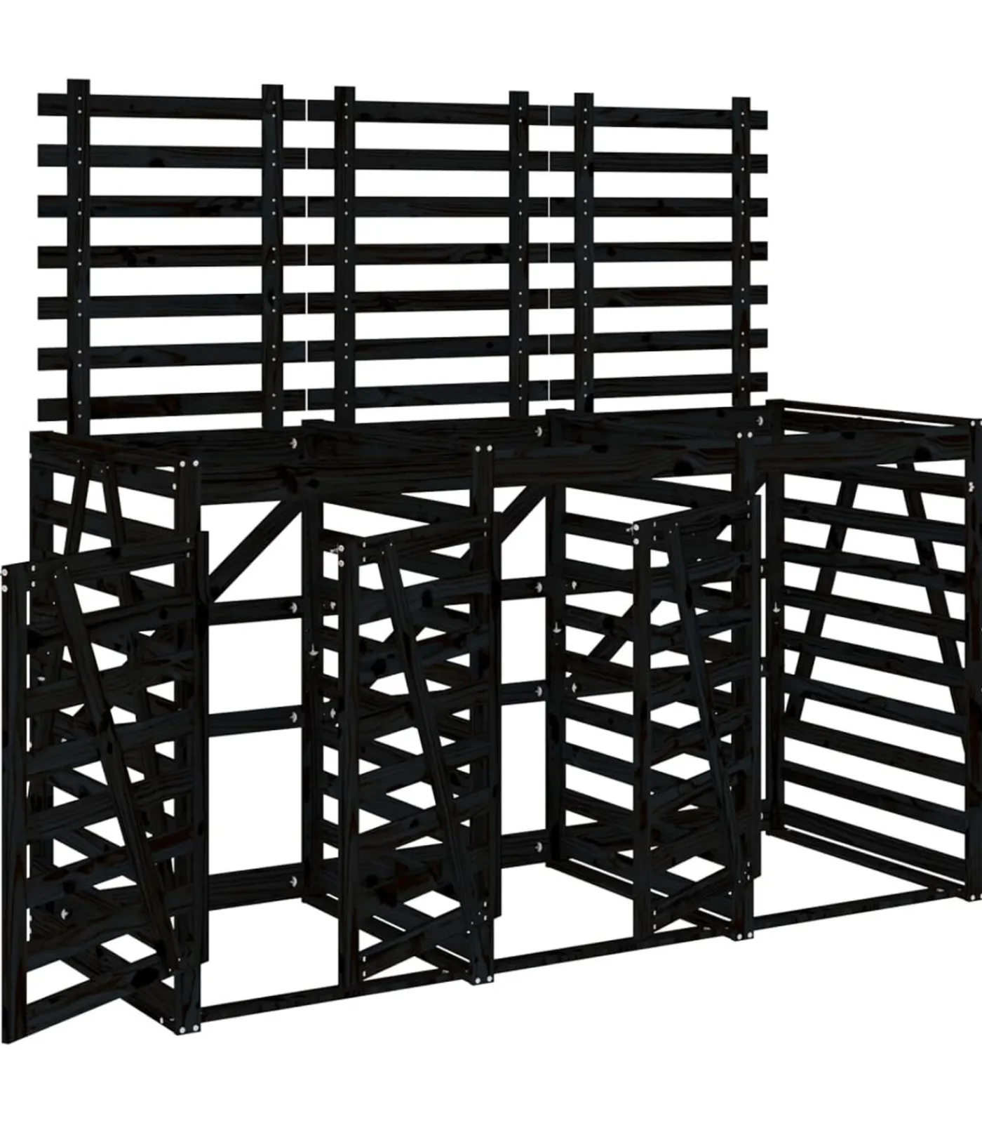 vidaXL Containerberging drievoudig massief grenenhout zwart