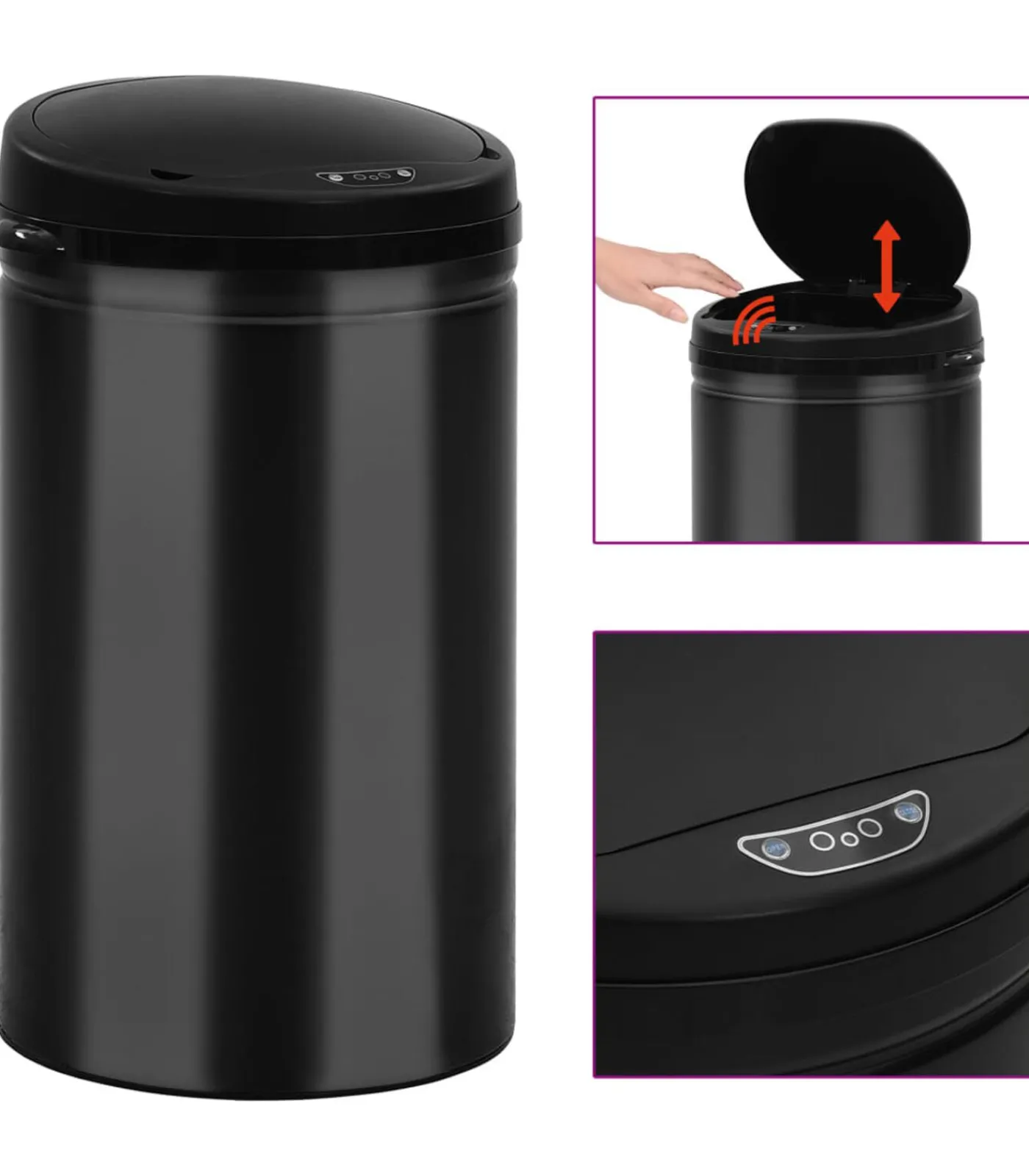vidaXL Prullenbak met automatische sensor 40 L koolstofstaal zwart
