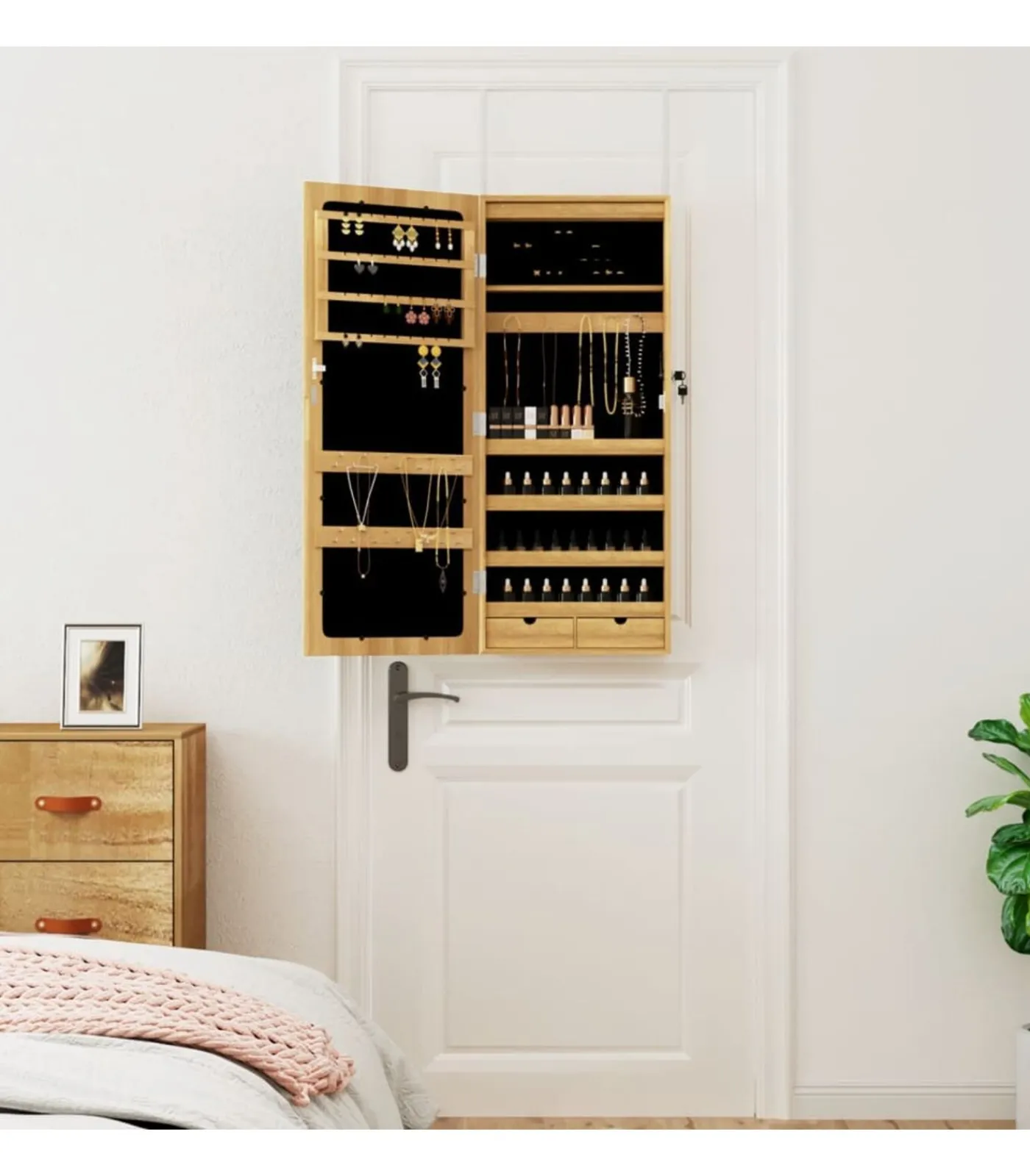 Ruimtebesparend ontwerp: hang de sieradenspiegel met de inbegrepen haken over de deur heen of bevestig hem aan de muur om vloerruimte te besparen.