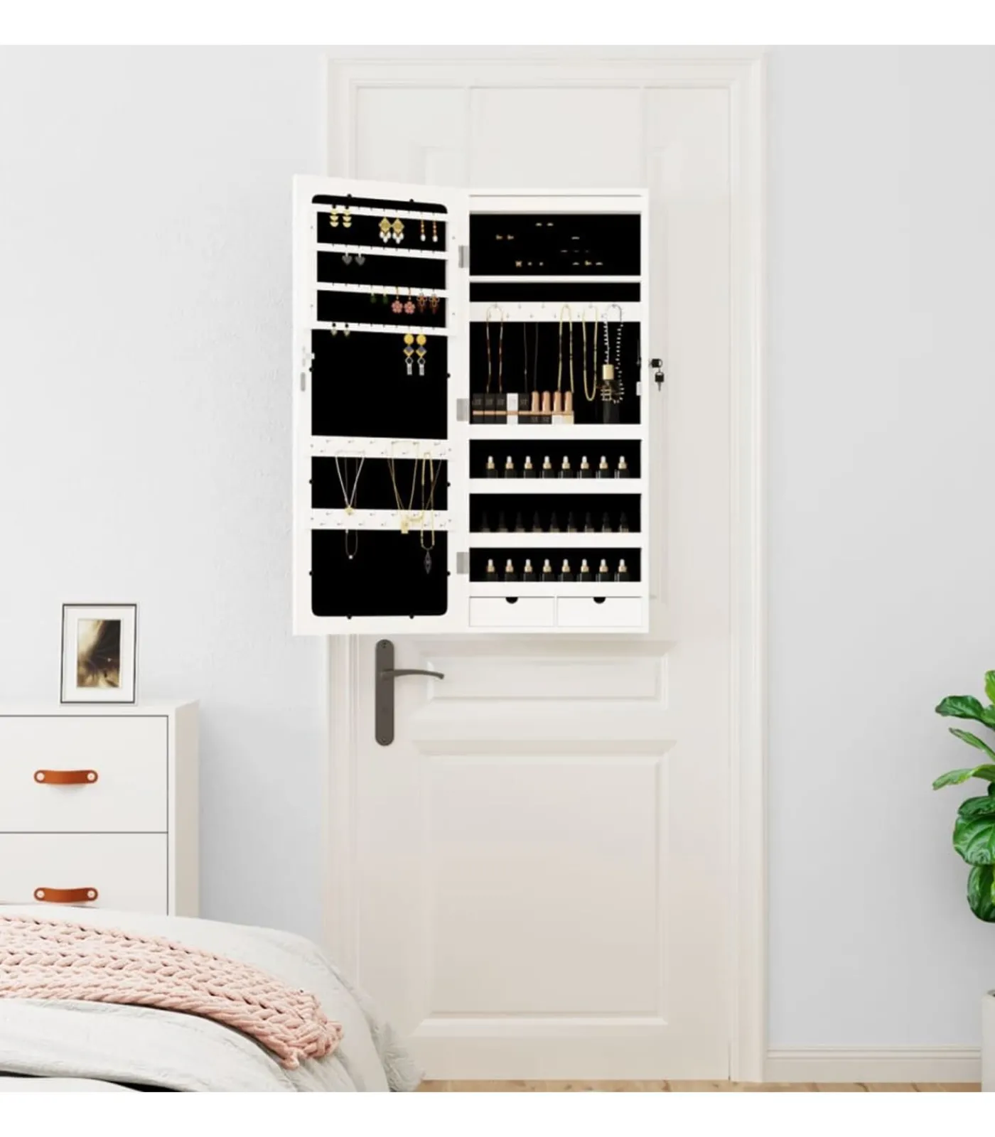 Handige LED–verlichting: de LED–verlichting bevindt zich bovenaan aan de binnenkant en gaat automatisch aan wanneer de deur opengaat, zodat je je sieraden kunt vinden.