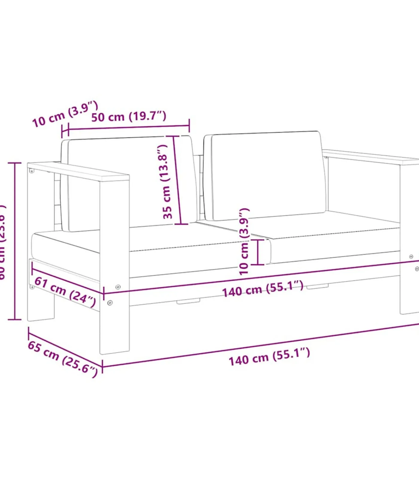 Afmetingen: 140 x 65 x 60 cm (B x D x H)
