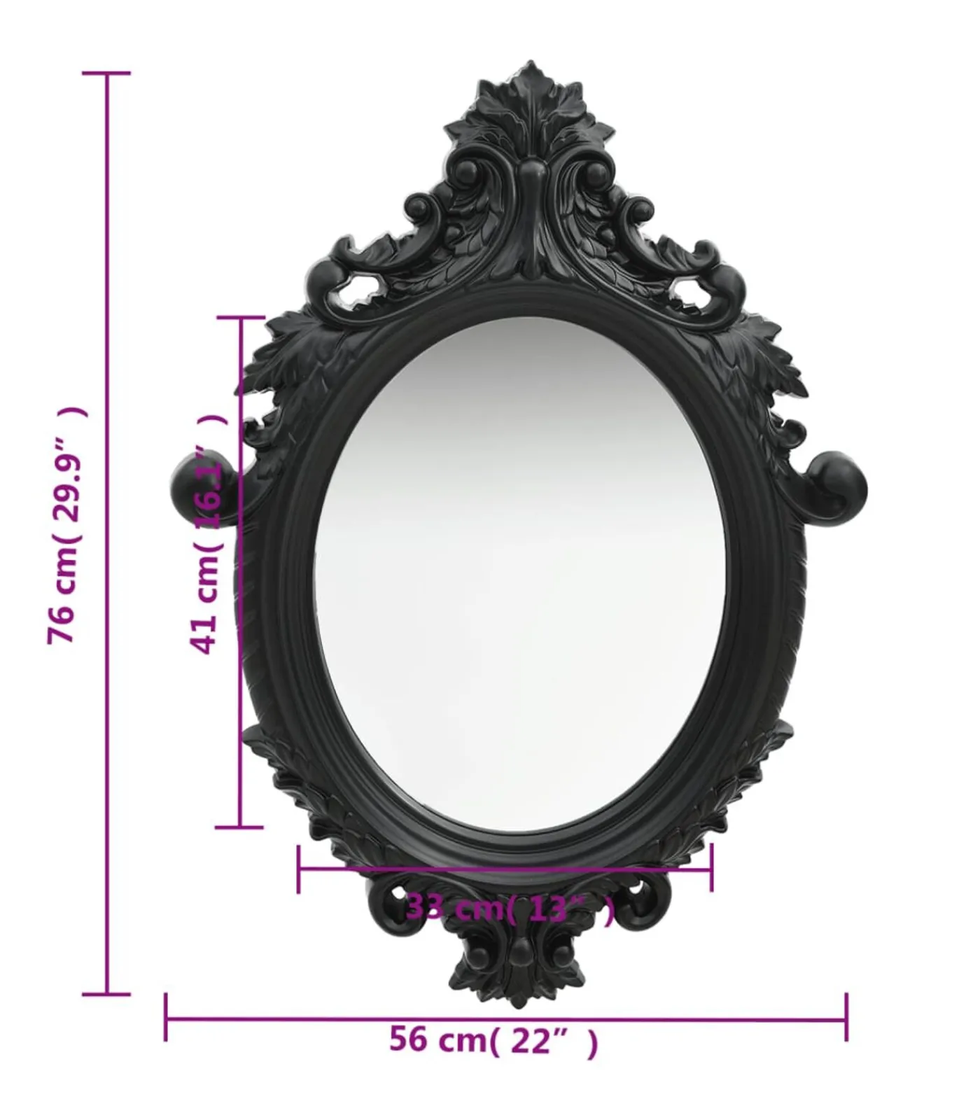 Deze spiegel met antieke uitstraling heeft een stevig PU frame dat zorgvuldig gemaakt is met een decoratief kasteelachtig patroon. Daarnaast geeft de platte rand deze spiegel een unieke look.